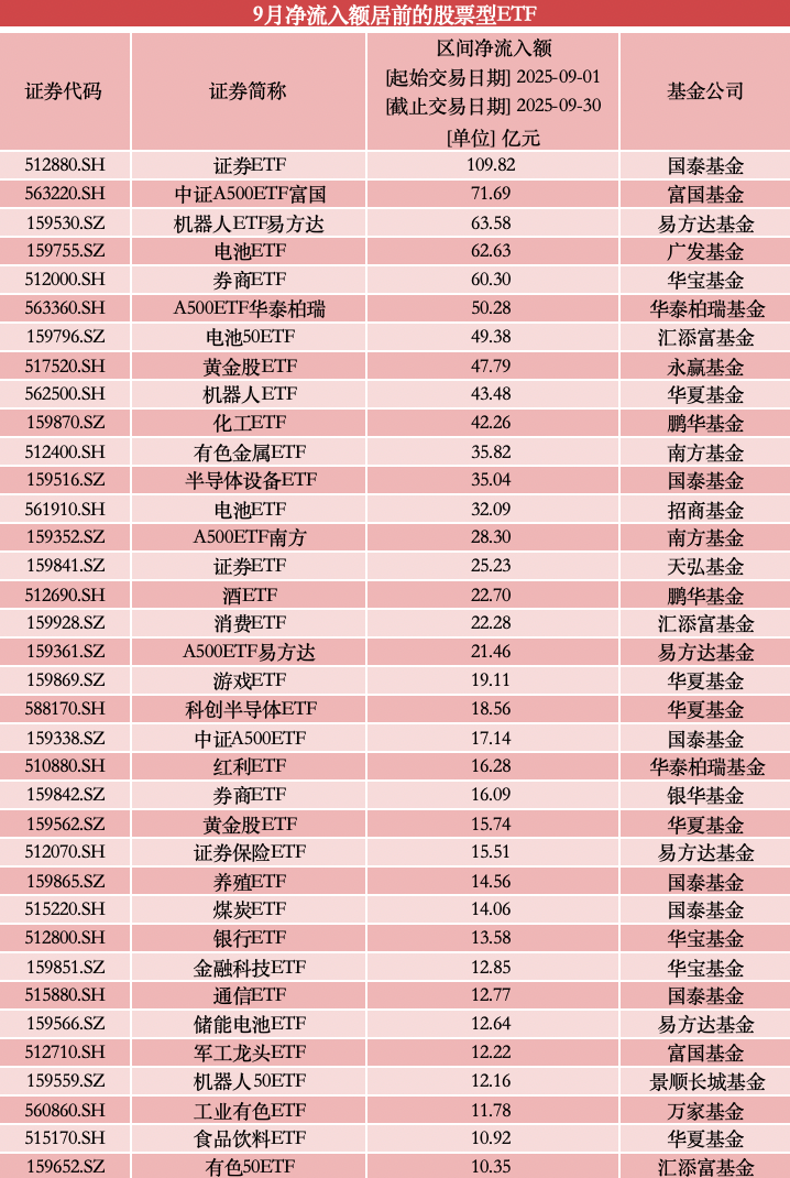 2025-10-01半岛体育,半岛体育官方网站,半岛体育APP下载澎湃新闻记者据Wind数据统计,股票型ETF的净流入额已连续两日在100亿元以上。全市场1037只可统计的股票型ETF基金,在9月26日、9月29日的合计净流入额分别为193.93亿元、122.69亿元。