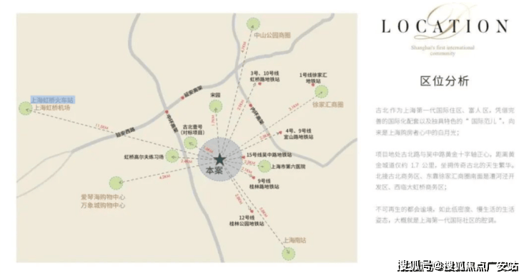项目地处闵行长宁交界的古北板块,项目依托虹桥交通枢纽和长宁徐汇商圈,交通便利配套成熟,是上海第一个大型高标准的国际豪宅社区!