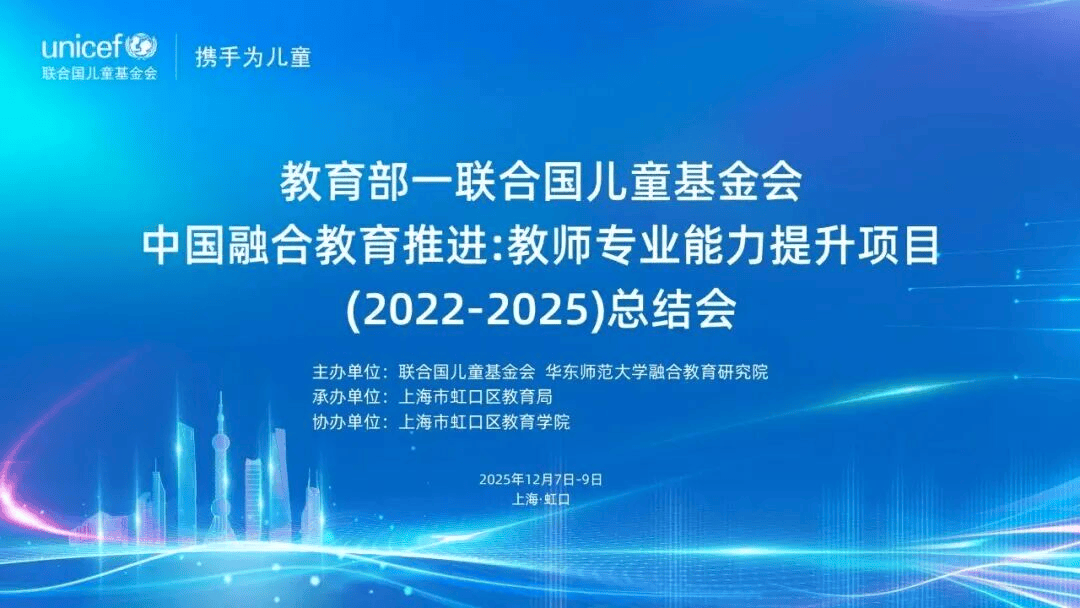 12月6日至9日,该项目2022-2025总结会在上海市虹口区召开,从义务教育与学前教育两个学段梳理了项目实施四年来的工作成果,并发布了教师融合教育《项目行动共识》。