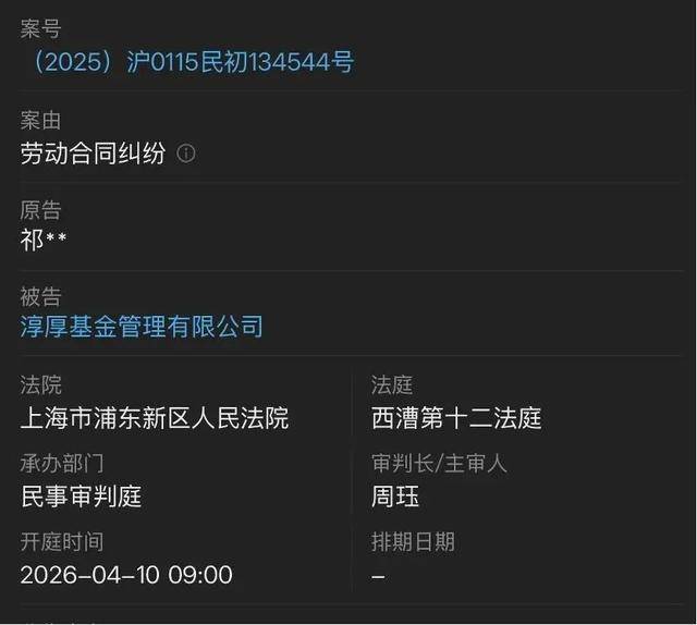 2026-01-08半岛体育,半岛体育官方网站,半岛体育APP下载显示,淳厚基金新增一条司法案件信息,原告祁某某因劳动合同纠纷,起诉了淳厚基金,案件将于4月10日开庭。