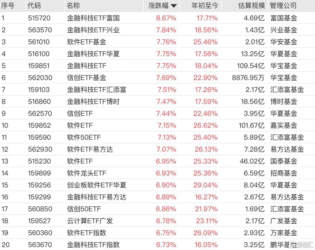 AI应用概念连续爆发,软件ETF基金、信创ETF基金、信创ETF、软件ETF、软件50ETF、软件ETF易方达涨超7%。
