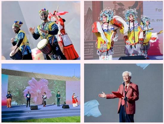 中外鼓乐联袂呈现《鼓韵和鸣》,节奏交融共振,奏响中外文明同频和鸣的春日序曲。儿童吟诵与演唱结合演绎京剧《洛神》,梅派经典焕新童韵,展现国粹传承与创新之美。诗歌《诗无界・声织春》以中文和英、法、葡、阿多语种交替吟诵,尽显文明互鉴、诗意相通。著名主持人、朗诵艺术家陈铎,国际友人柯马凯深情演绎中外经典诗作,传递海棠雅韵与中外深厚情谊。中央民族大学音乐学院携手小演员献上器乐欢歌《和合之美》,蒙古长调、韩国盘索里与二胡、马头琴、弹布尔、非洲鼓等多元器乐合奏,串联《鸿雁》《茉莉花》《阿里郎》等经典曲目,各美其美、美美与共。北京舞蹈学院带来古典舞《唐印》,以典雅身姿再现盛唐气韵,尽展东方古典舞之端庄大气与盛世风华。北京音协童声合唱团唱响《一路欢笑一路歌》,融合中外童谣与经典旋律,尾声全体演员持海棠花束致意,将整场演出推向温暖热烈的高潮。