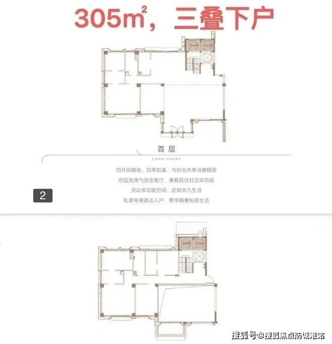 下叠面积为305㎡,首首层花园面积区间约为233-517㎡,实用率238-355%;三叠户型最高可做到6房。
