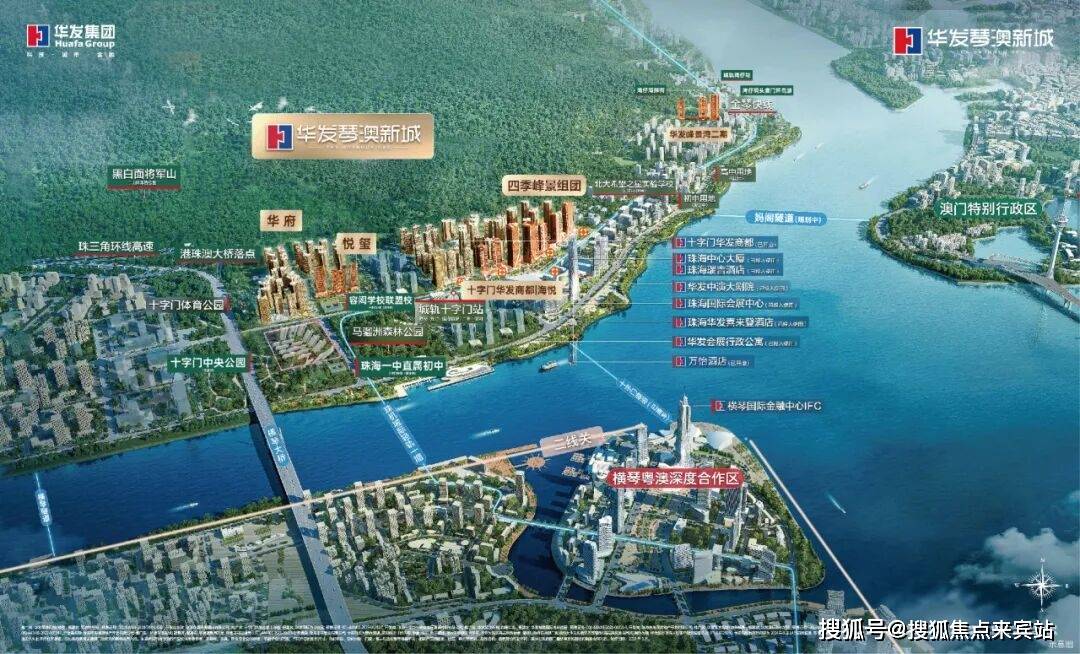 华发琴澳新城位于十字门中央商务区核心C位,脚下就是鎏金之地,奢享国际会展集群、星级酒店集群、总部办公集群、旗舰商业集群、人文艺术集群、全龄教育集群六大配套集群,重新定义了何为湾区理想人居。