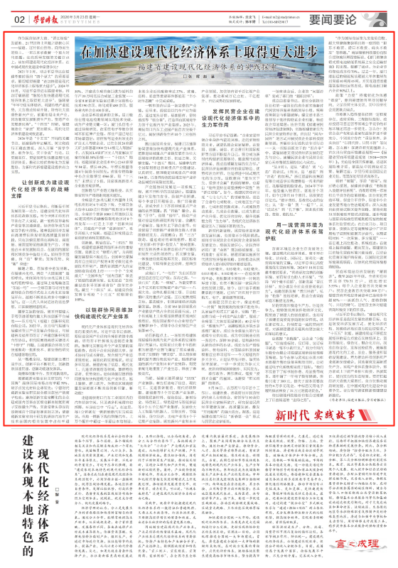 2026-03-23半岛体育,半岛体育官方网站,半岛体育APP下载3月23日,学习时报第02版刊发了福建日报、学习时报联合推出文章《在加快建设现代化经济体系上取得更大进步——福建省建设现代化经济体系的实践探索》。文章聚焦福建让创新成为建设现代化经济体系的战略支撑、以链群协同思维加快构建现代化产业体系、发挥民营企业在建设现代化经济体系中的生力军作用、用一流营商环境为现代化经济体系保驾护航。一起来看详情——